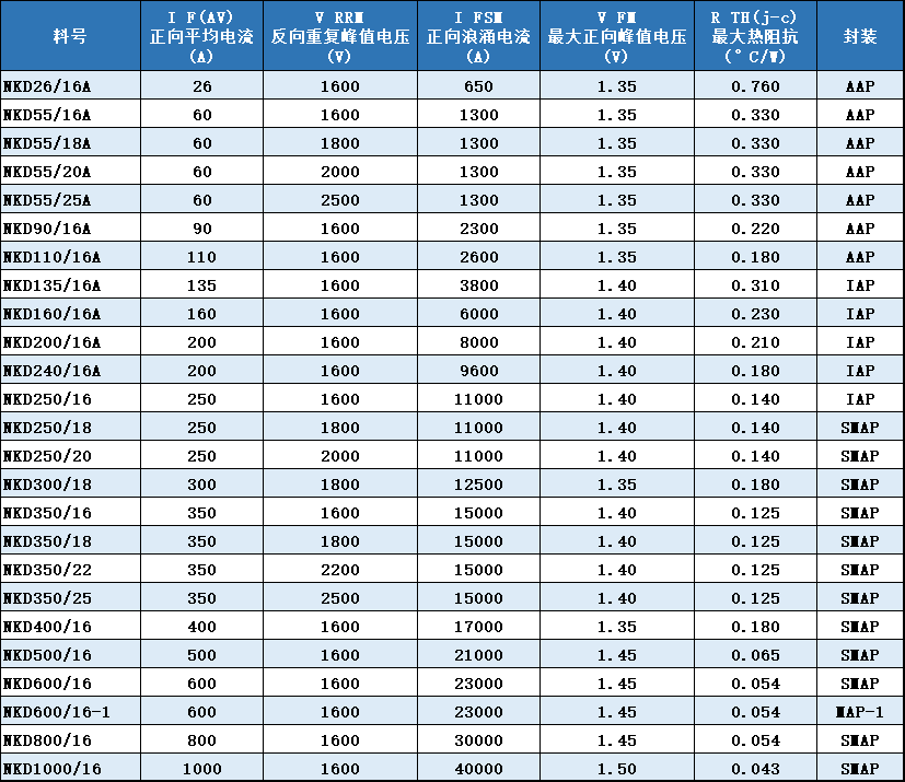 ※ 正向平均电流:26A - 1000A