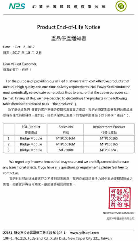 部分产品停产通知